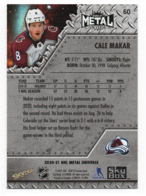 2020-21 Skybox Metal Universe ePack Spectrum Parallel #60 Cale Makar