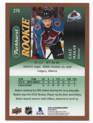 2019-20 Upper Deck Parkhurst ePack Bronze Parallel #275 Cale Makar RC