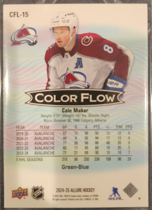2024-25 Upper Deck Allure Cale Makar Colorflow Green-Blue