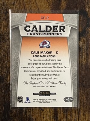 Cale Makar 2019-20 opc platinum Calder front runners auto