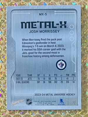 2023-24 Metal Universe Hockey #MX-5 Josh Morrissey Metal X SP