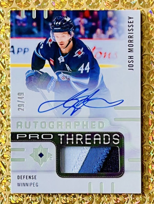 2024-25 UD Ultimate Collection #PT-JM Josh Morrissey Pro Threads 3-Color Patch Auto /49