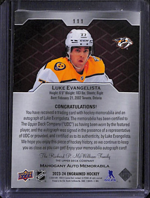 2023-24 Engrained Luke Evangelista #111 Mahogany Auto Memorabilia 15/25 RPA