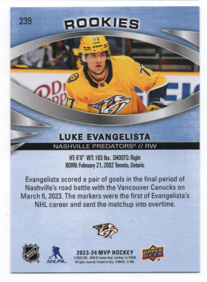 2023-24 Upper Deck MVP #239 Luke Evangelista RC