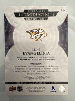 Luke Evangelista, 2023-24 Ultimate, Ultimate Introductions, Auto
