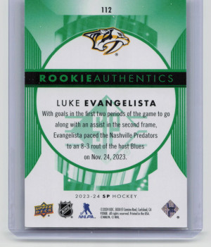 2023-24 Upper Deck SP Hockey Luke Evangelista #112 Green Rookie 16/25
