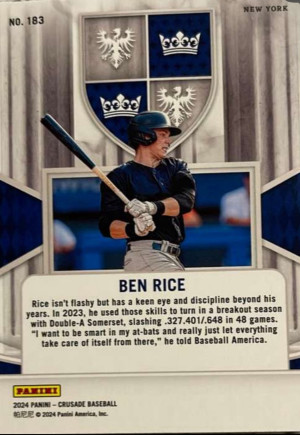 2024 Panini Crusade #183 Ben Rice, Nee York Yankees
