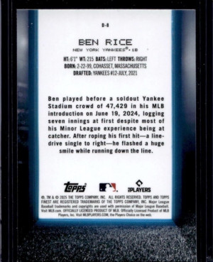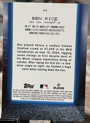 2025 Finest Ben Rice Debut RC Rookie #D-8 Yankees