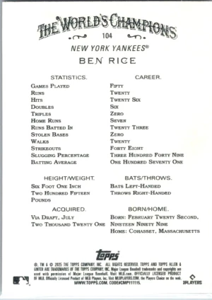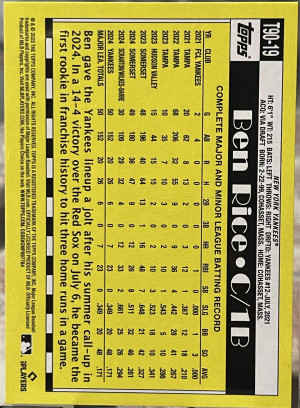 2025 Topps 35th Anniversary Ben Rice #T90-19 New York Yankees (RC)