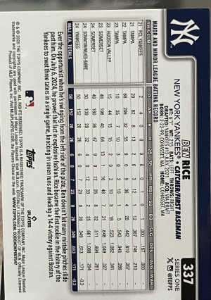 2025 Topps Series 1 Ben Rice #337 Rainbow Foilboard (RC)