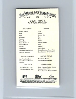 2025 Topps Allen & Ginter #104 Ben Rice Mini Gold Border