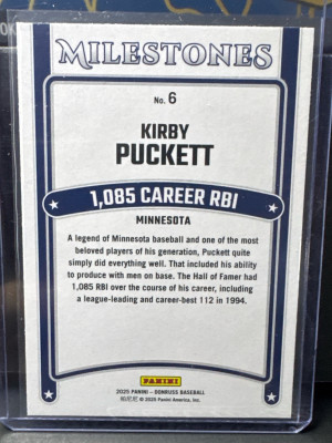 2025 Donruss Milestones Kirby Puckett Minnesota Twins #6