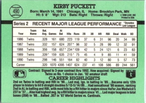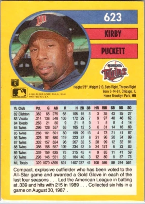 1991 Fleer #623b Kirby Puckett