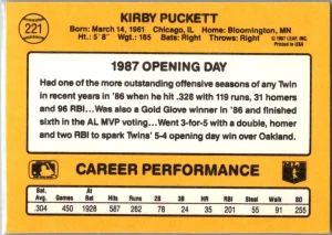 1987 Donruss Opening Day #221 Kirby Puckett