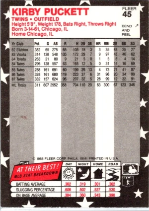 1988 Fleer Star Stickers #45 Kirby Puckett