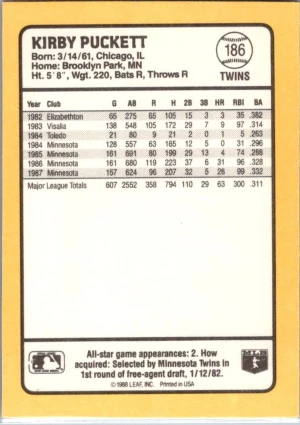 1988 Donruss Baseball's Best #186 Kirby Puckett