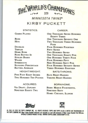 2025 Topps Allen & Ginter #329 Kirby Puckett