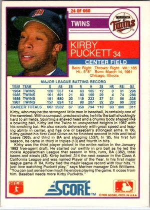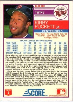1988 Score #24 Kirby Puckett