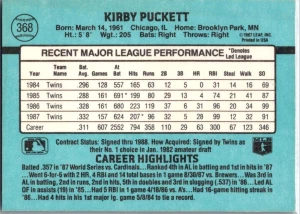 1985 Topps Kirby Puckett Rookie