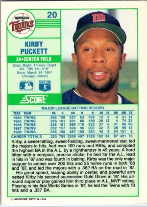 1989 Score #20 Kirby Puckett