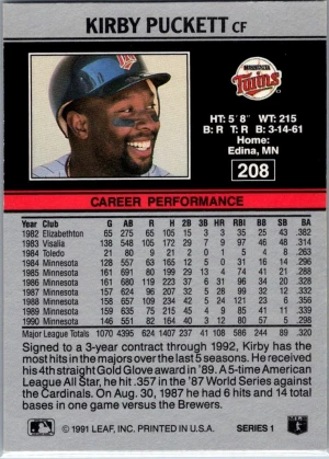 1991 Leaf #208 Kirby Puckett