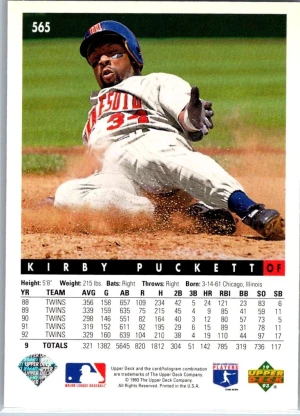1993 Upper Deck #565 Kirby Puckett Gold Hologram