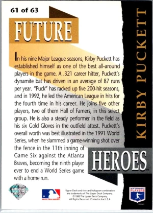 1993 Upper Deck #61 Kirby Puckett Future Heroes