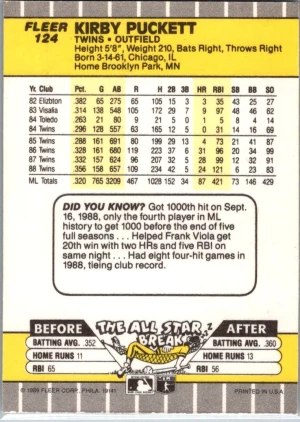 1989 Fleer #124 Kirby Puckett
