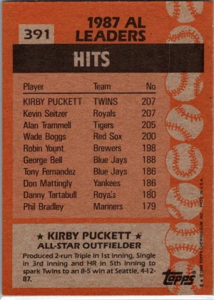 1988 Topps #391 Kirby Puckett