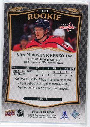 2023-24 Upper Deck Stature #33 Ivan Miroshnichenko Rookie Orange 151/199