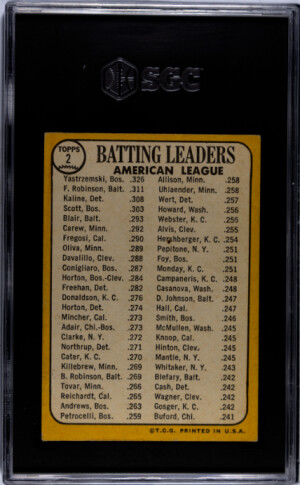 1968 Topps A.L. Batting Leaders SGC 5