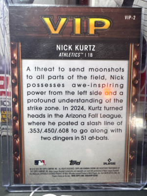 2025 Bowman #VIP-2 Nick Kurtz ROY Prospects Mojo Refractor Athletics