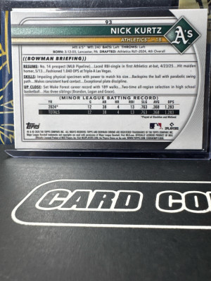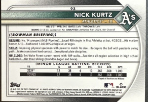 2025 Bowman Chrome NIck Kurtz Rookie Oakland Athletics #93 RC ROY
