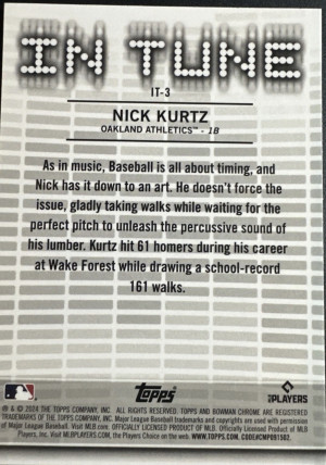 2024 Bowman Draft Baseball Nick Kurtz In Tune #IT-3 Athletics