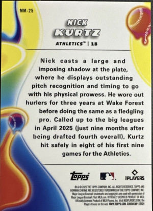 2025 Bowman Chrome Baseball Nick Kurtz Melt Mashers RC #MM-25 Athletics