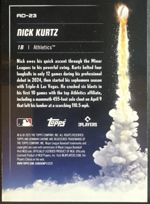 2025 Bowman Chrome Baseball Nick Kurtz Adios RC #AD-23 Athletics