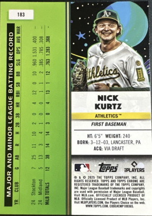 2025 Topps Chrome Cosmic Baseball Nick Kurtz RC #183 Athletics