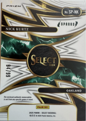 2025 Panini Select Baseball Nick Kurtz Rookie Sparks Relic Red Prizm /99