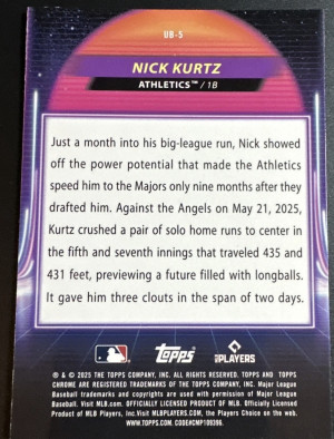 2025 Topps Chrome Cosmic Baseball Nick Kurtz Ultraviolet Beam #UB-5 Athletics (RC)