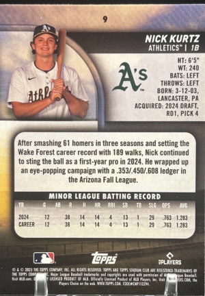 2025 Topps Stadium Club Baseball #9 Nick Kurtz Athletics RC Rookie