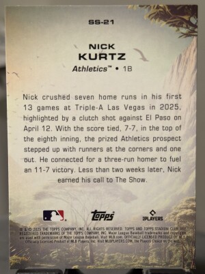 2025 Topps Stadium Club- Savage Sluggers Nick Kurtz #SS-21 (RC)