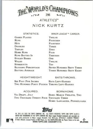2025 Topps Allen & Ginter #296 Nick Kurtz