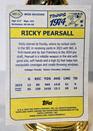Ricky Pearsall -2024 Topps Chrome 1974 Topps Football #74TF-11 (RC)