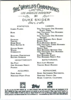 2014 Topps Allen & Ginter #261 Duke Snider