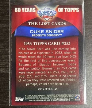 2011 Topps - 60 Years of Topps: The Lost Cards #60YOTLC-2 Duke Snider Mint