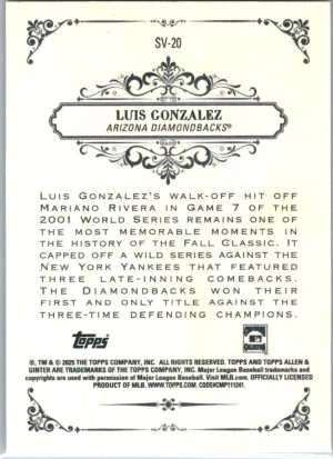 2025 Topps Allen & Ginter #SV-20 Luis Gonzalez Sweet Victory