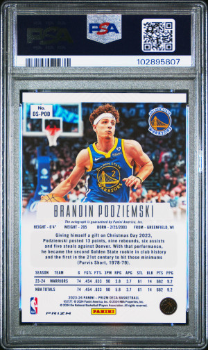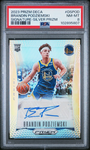 2023 Panini Prizm Deca Signatures Brandin Podziemski Signature-Silver Prizm PSA 8