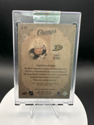 2023-24 Upper Deck Clear Cut Champs Autos Troy Terry C-TT Ducks