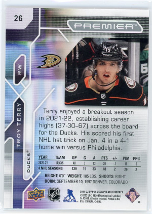 2021-22 Upper Deck Premier #26 Troy Terry 166/299