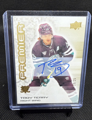 Jersey Number! 2021-22 Upper Deck Premier Troy Terry Base Gold Auto 19/25 #26